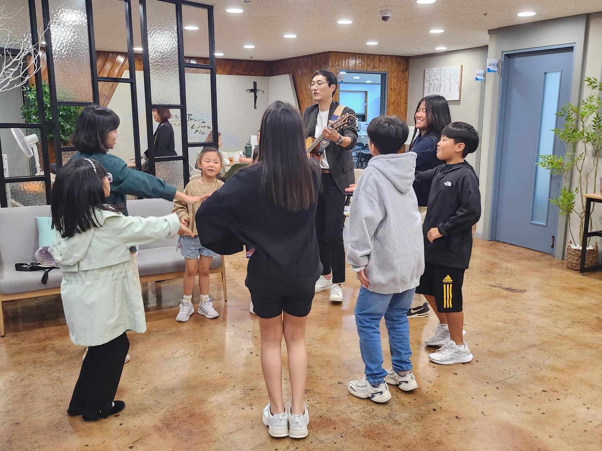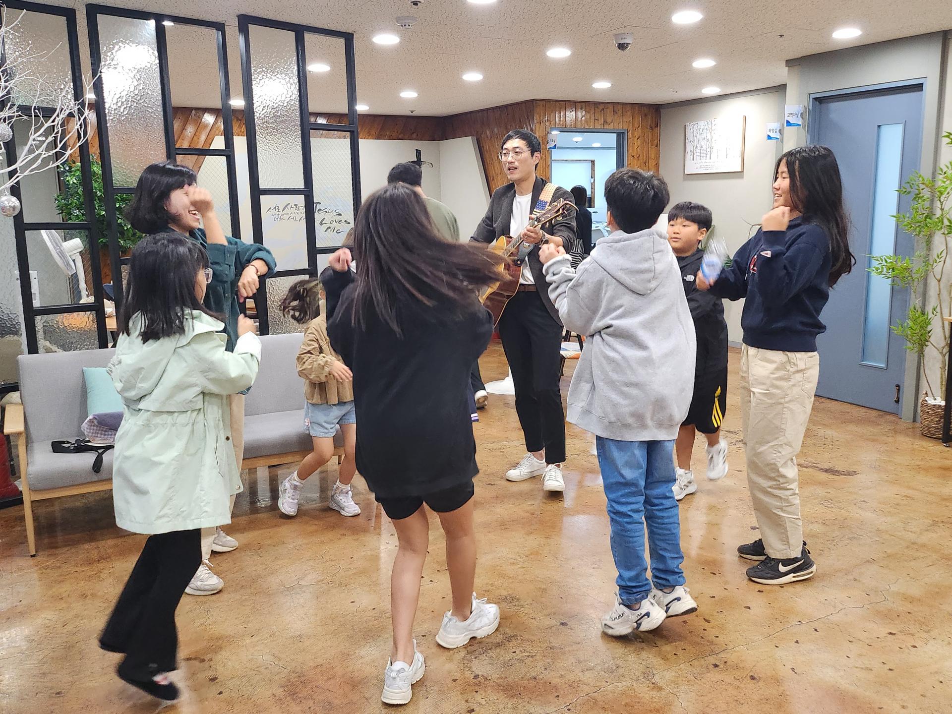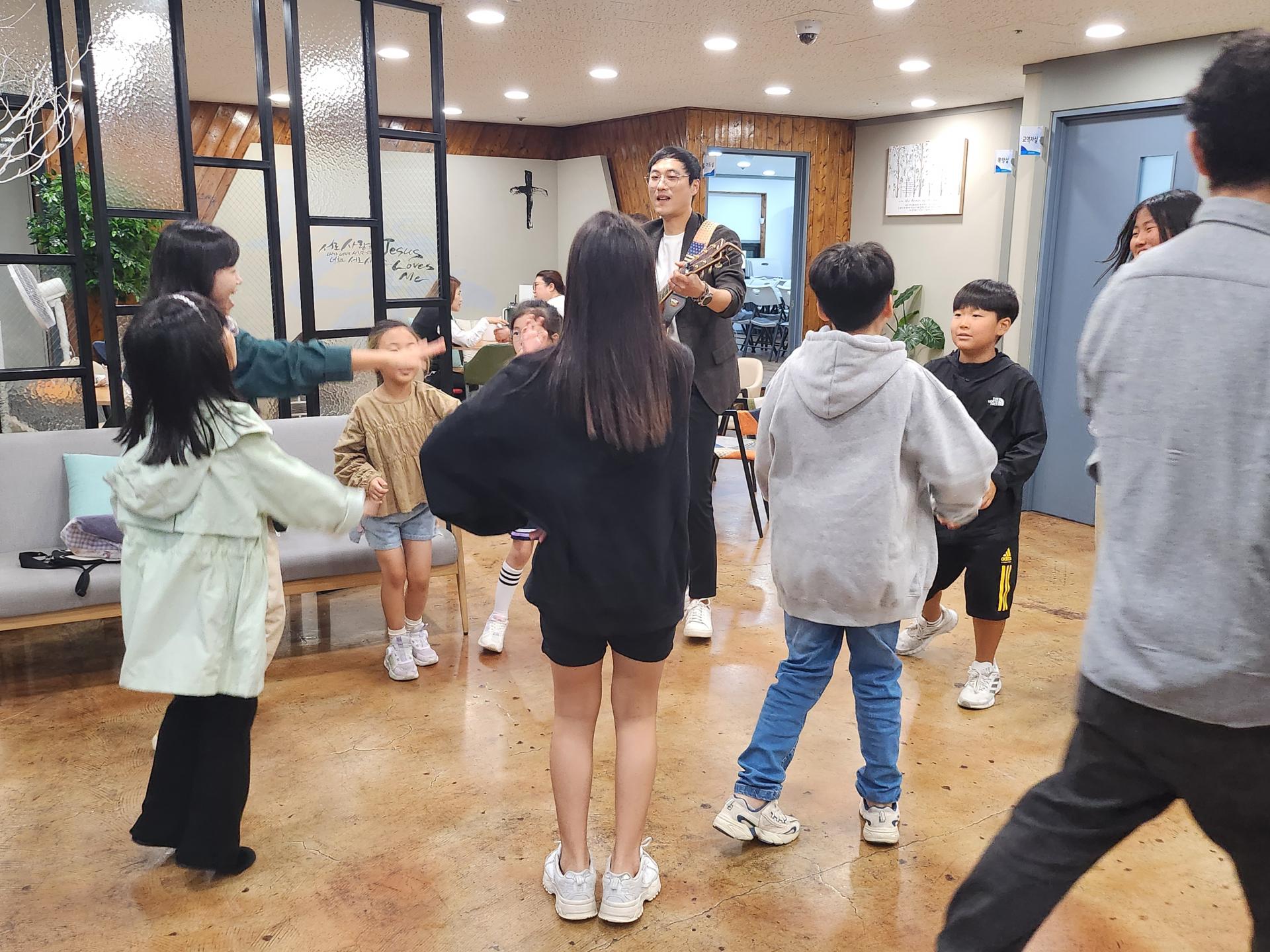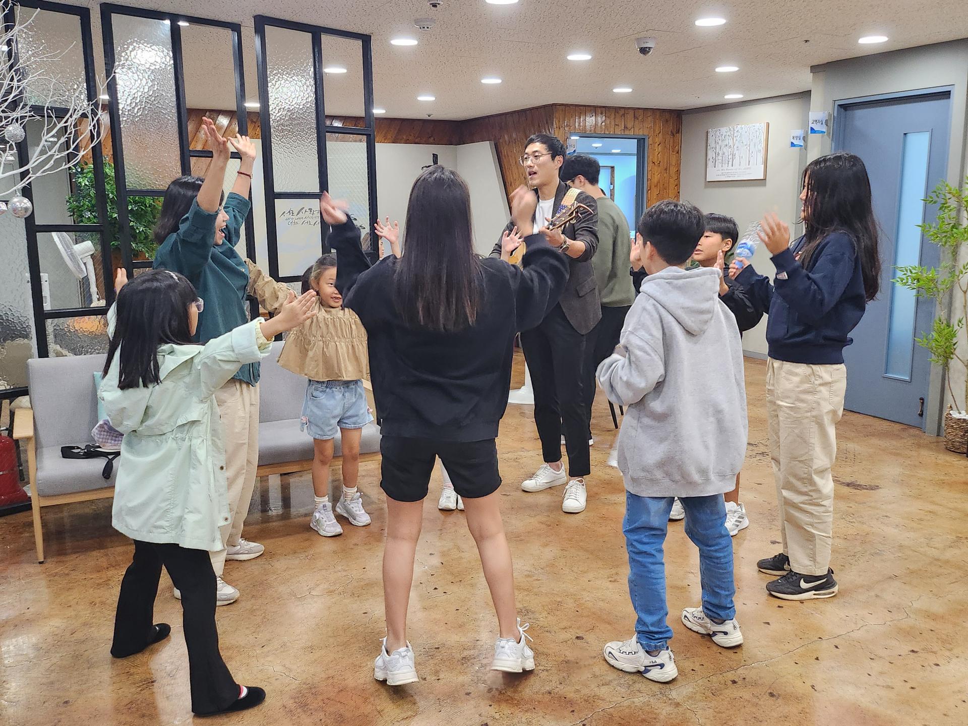 병길 선생님은 기타로 승희 선생님은 몸찬양으로 친구들과 함께 준비하고 있습니다!