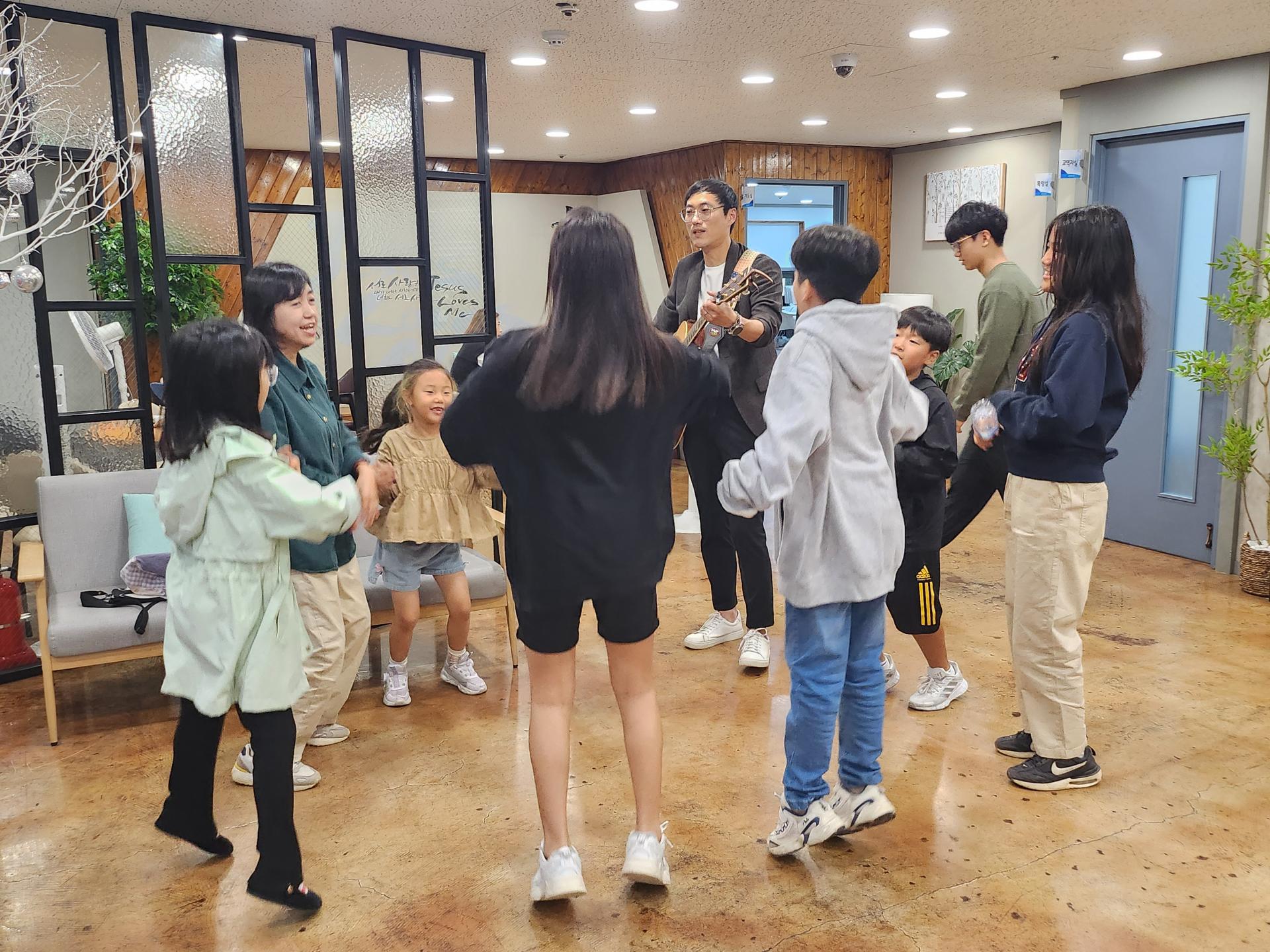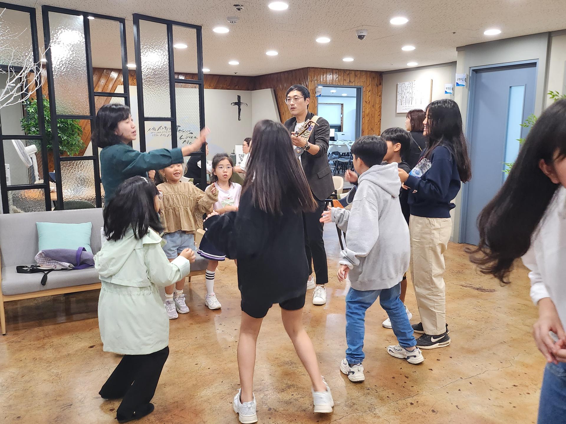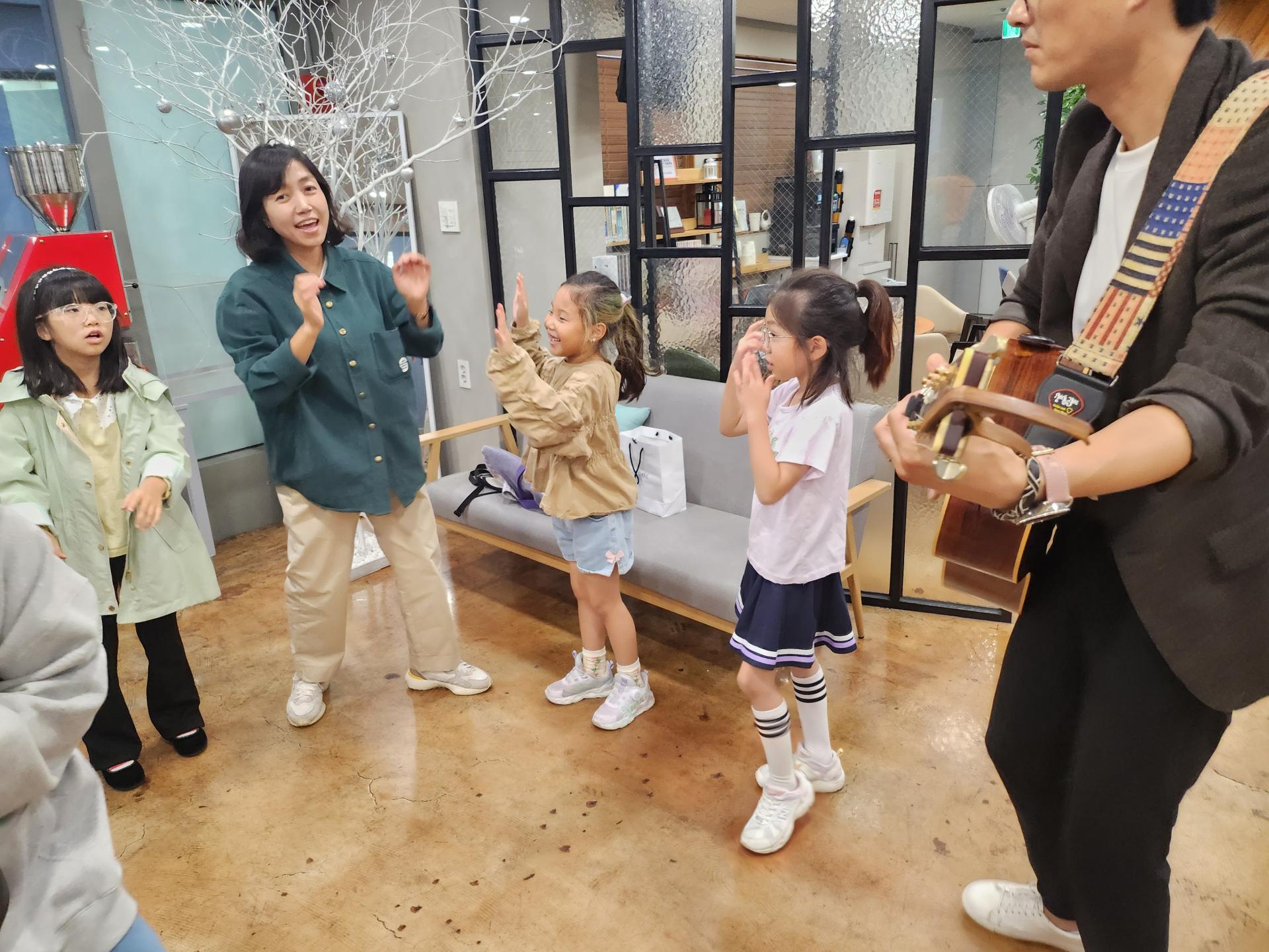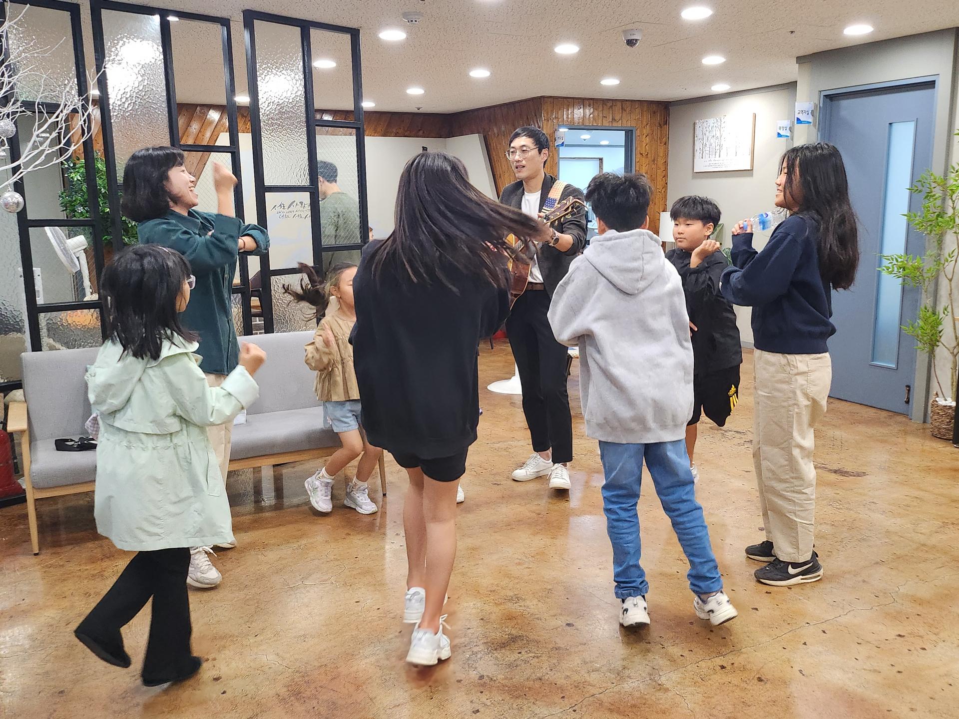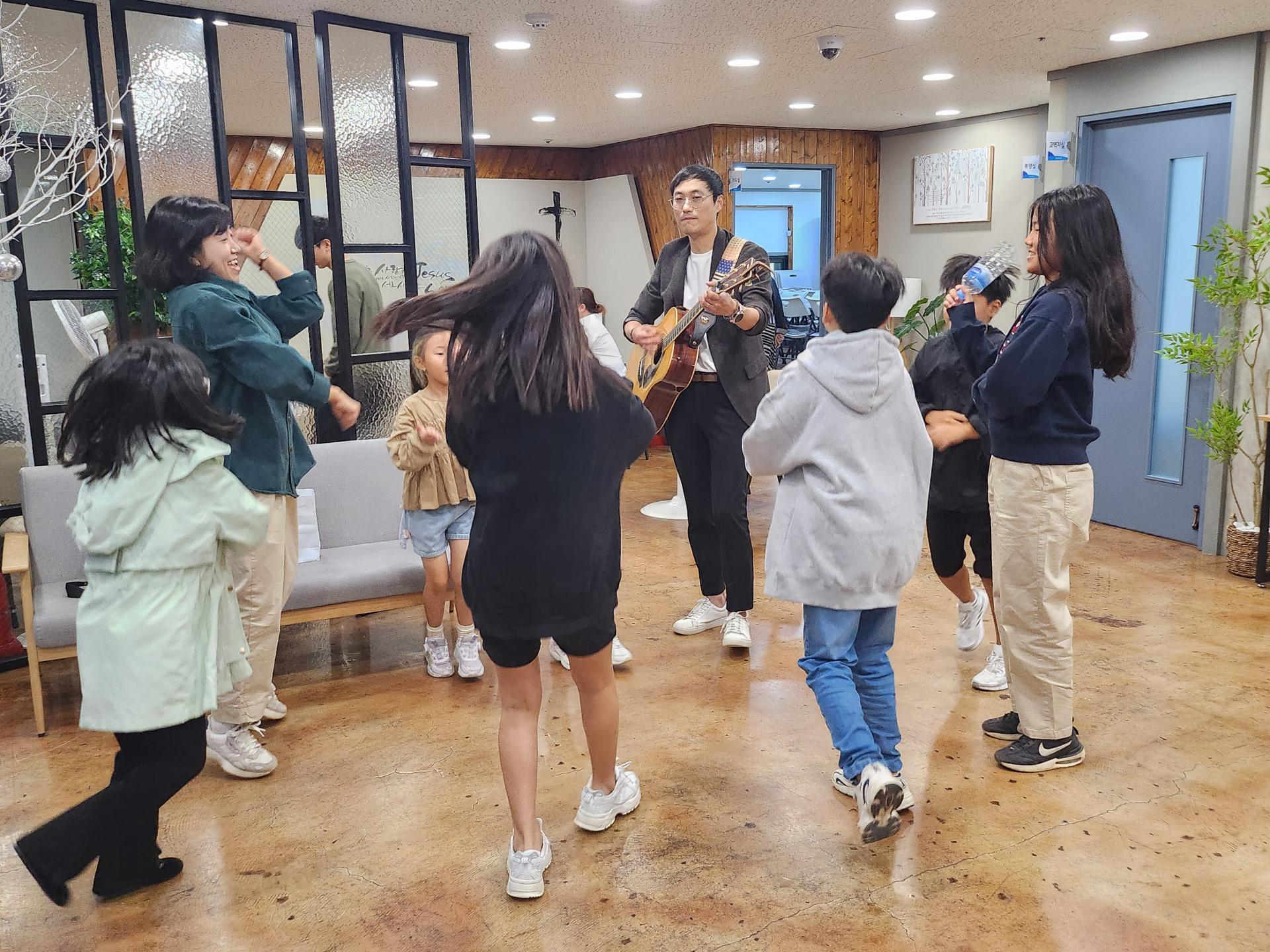 병길 선생님은 기타로 승희 선생님은 몸찬양으로 친구들과 함께 준비하고 있습니다!