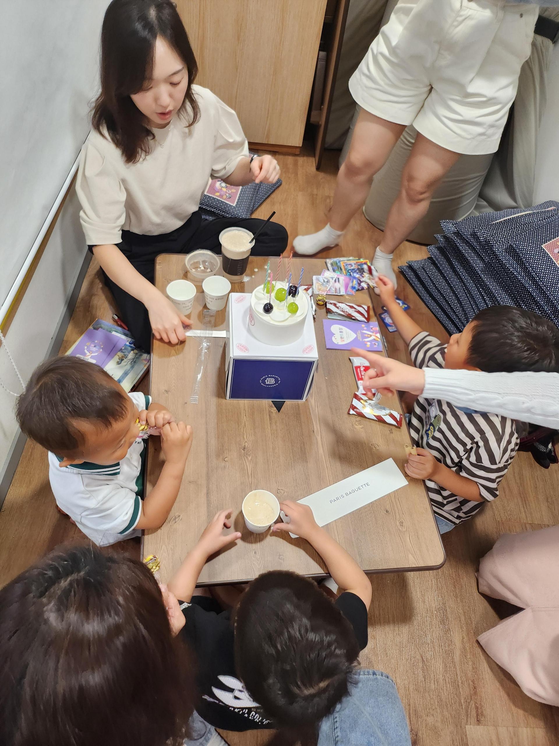 스토리바이블 전에 깜짝 생일파티를 진행했습니다. 다같이 케이크도 나누어 먹고 즐거운 시간을 보냈답니다 ><